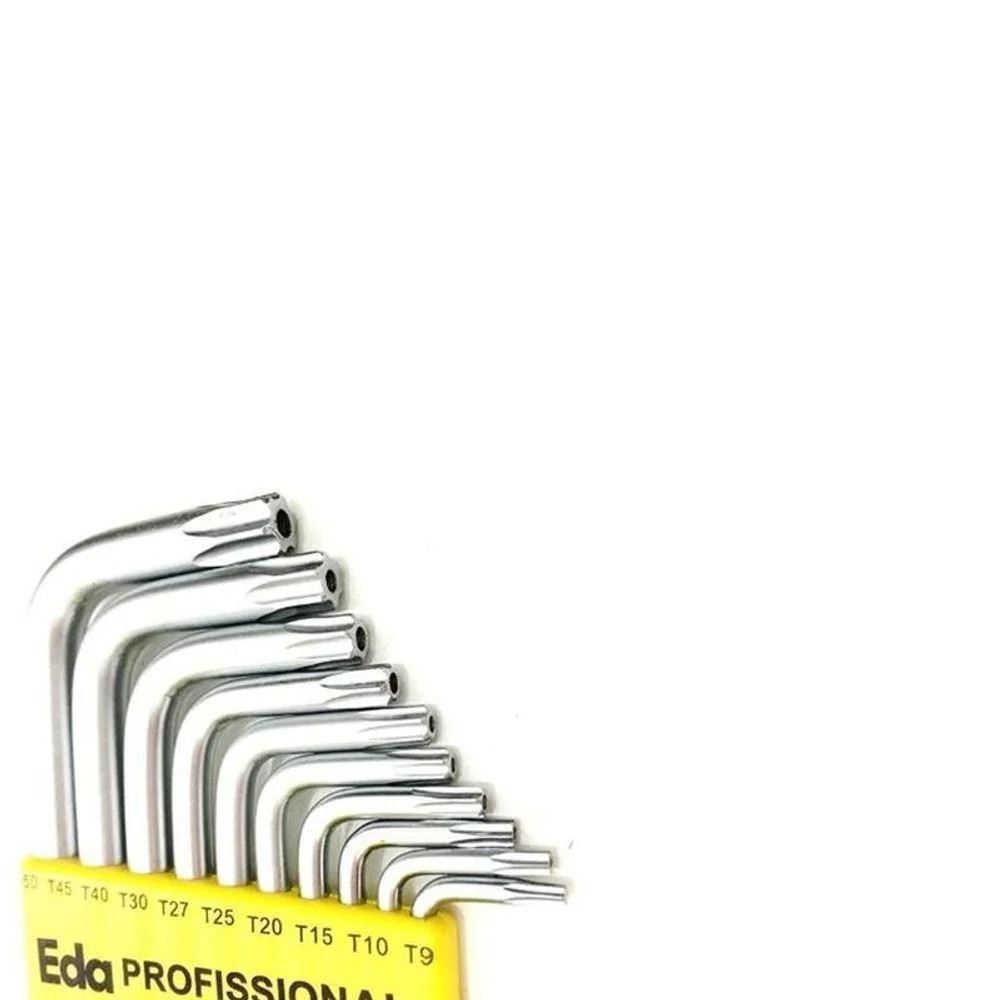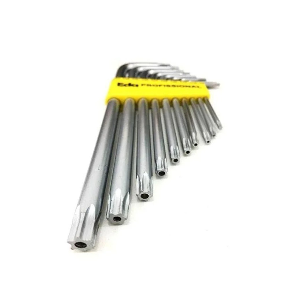 Kit Chave torx Aço tipo L com 10 pecas T9 a T50 EDA 8QH Extra Longa.